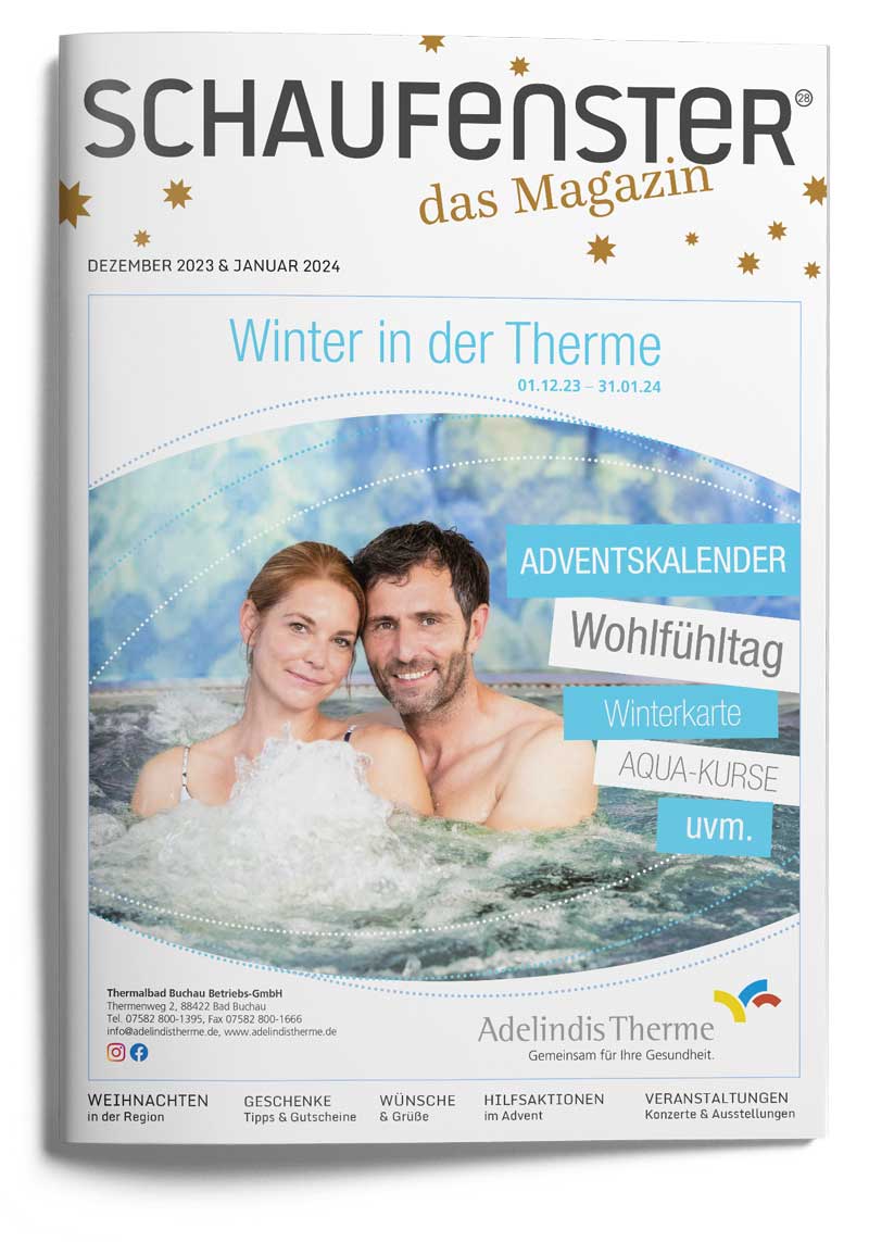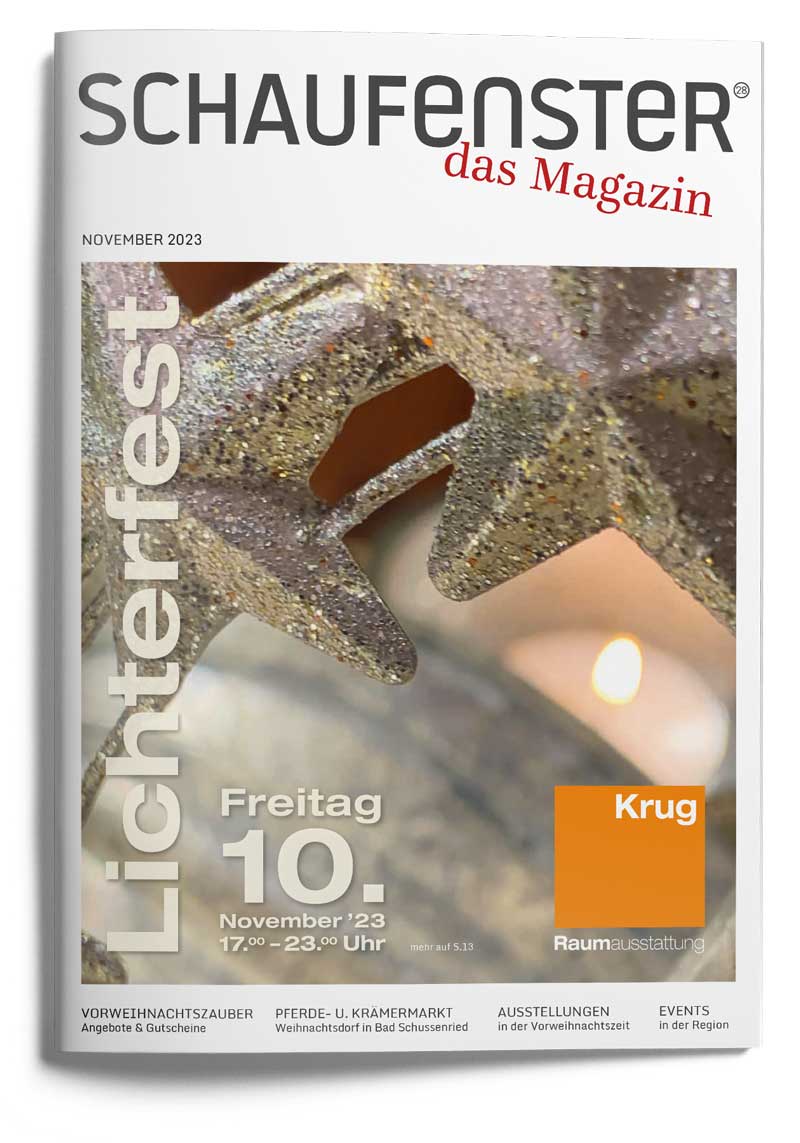 Seit dem Jahr 2021, stellen wir Ihnen das Schaufenster auch als Online-Ausgabe zur Verfügung. Die Online-Ausgabe ist immer schon früher verfügbar. Wir wünschen Ihnen viel Spaß beim Blättern & Lesen.